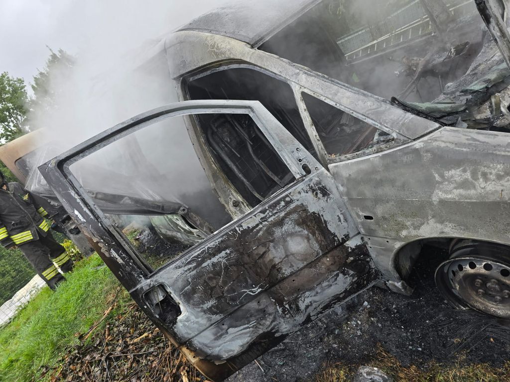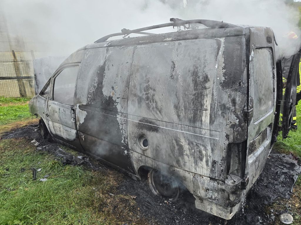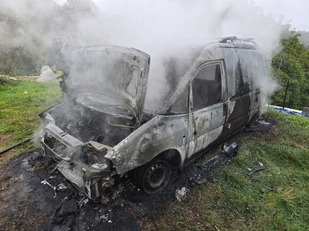 Dopo l'incidente, un incendio: i Vigili del Fuoco sono tornati a Zumaglia per un furgoncino avvolto completamente dalle fiamme.