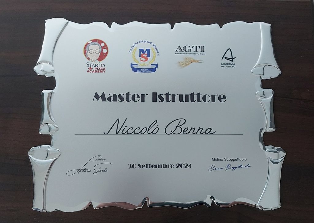 Cercato e invitato a partecipare, dopo averlo visto all'opera sui propri social e nei vari eventi a cui ha partecipato, Nicolò e' riuscito ad ottenere proprio in questa settimana l'ambito premio "master istruttore pizzaiolo" conseguito dopo un corso all'accademia Starita e la sua pizzeria, considerata una delle migliori pizze di Napoli e del mondo.