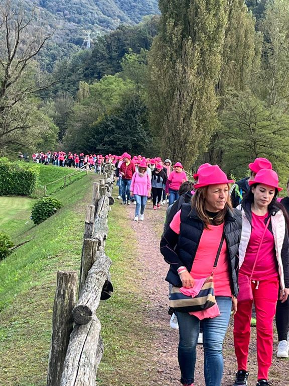 Pubblico delle grandi occasioni a Pray in occasione della Camminata in Rosa, andata in scena nel pomeriggio di oggi, 6 ottobre. Oltre 210 partecipanti per una lunga carovana rosa che ha percorso le vie principali del paese per un tragitto lungo quasi 3 chilometri.