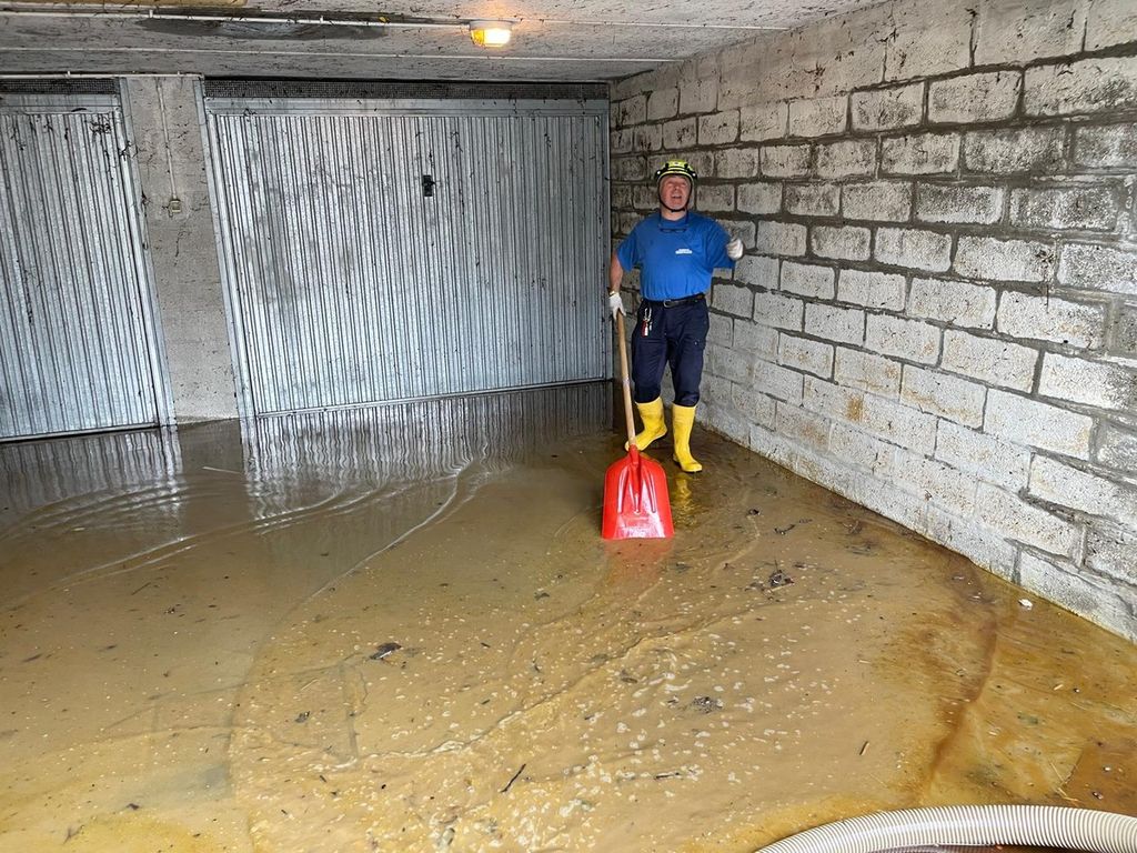 Grazie all'utilizzo di dieci pompe, i volontari lavorano incessantemente per rimuovere l'acqua che ha causato gli allagamenti, ripristinando l'area a favore della popolazione.