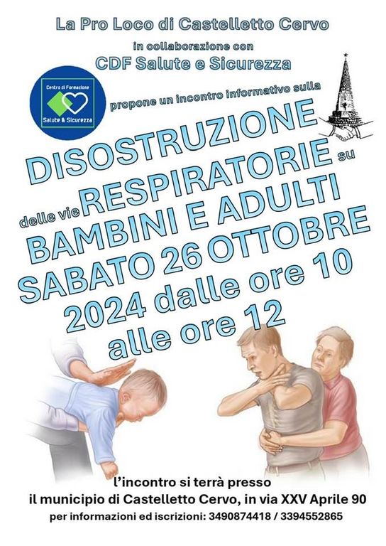 Un incontro informativo per imparare la disostruzione delle vie respiratorie su bambini e adulti.