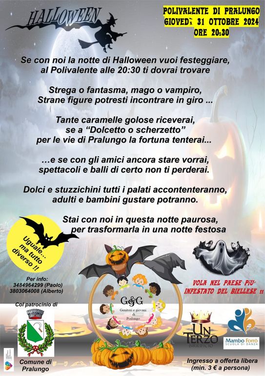 La sera di Halloween, alle 20.30 del 31 ottobre, al Polivalente di Pralungo, ci sarà la possibilità di fare “Quat Pass per Pralungh” tra le vie del paese per cercare mostri, fantasmi e zombie.