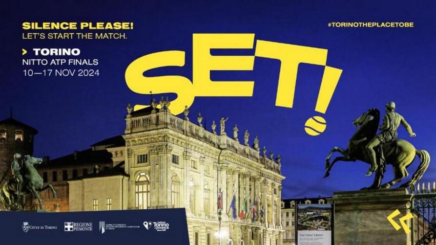 “SILENCE PLEASE - let’s start the match”. La campagna di comunicazione, elaborata dall'agenzia hellobarrio, celebra uno degli elementi chiave del tennis: la pausa, il momento prima di ogni scambio decisivo. Il claim è un richiamo all’iconica frase che precede l’inizio di ogni “punto” e rappresenta inoltre la transizione tra il branding del territorio e l’adrenalina pura del match. Il silenzio è rotto dall’azione, proprio come il design rompe gli schemi, evocando emozioni forti e una narrazione visiva immediata. Torino diventa la scenografia principale del match point: ogni strada, monumento e simbolo architettonico è il proscenio su cui si gioca la partita. “SILENCE PLEASE” invita il pubblico a un momento di attesa carico di tensione, mentre “Let’s start the match” annuncia l’inizio dell’azione, proprio come un servizio preciso e potente che inaugura il gioco. La visual identity della campagna si fonda sull'uso di onomatopee tennistiche potenti “ACE!”, “SET!”, “GAME!”, termini che fanno parte del lessico tecnico del tennis. Grazie ad una pianificazione nazionale e internazionale ad alta diffusione che ha privilegiato luoghi con grande traffico e movimento di passeggeri (aeroporti nazionali e internazionali come Londra e Francoforte, le 13 stazioni ferroviarie italiane principali), Torino e il Piemonte sono pronti a scendere in campo e invitano i turisti a partecipare.