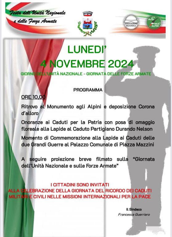 Lunedì 4 novembre l'Amministrazione di Borriana renderà omaggio ai suoi Caduti in occasione della Giornata dell’Unità Nazionale e delle Forze Armate.
