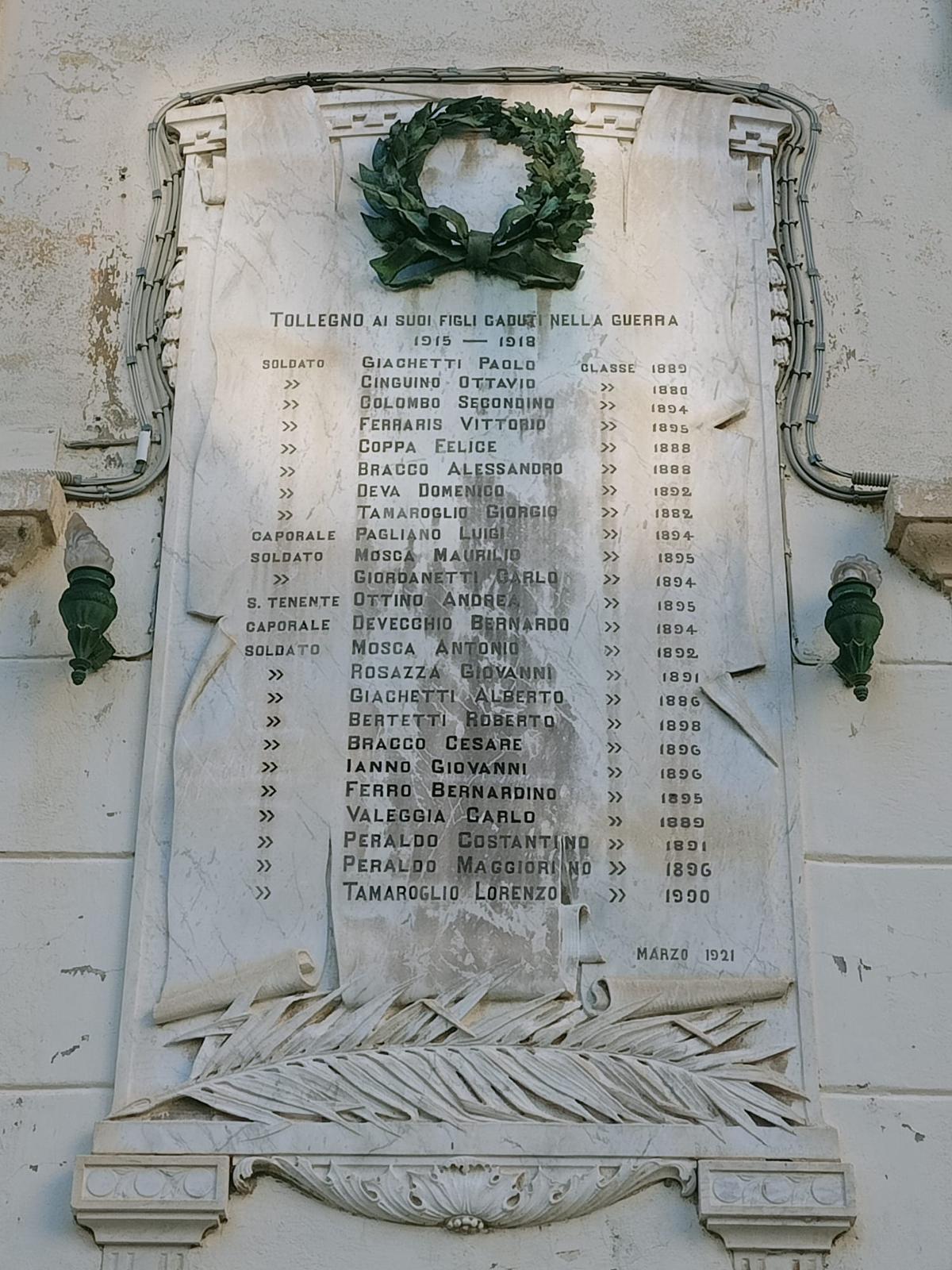 Tollegno non dimentica i 24 ragazzi del paese che hanno perso la vita nella più brutale delle guerre del ‘900. Sono solo 24 sulle centinaia di migliaia di militari morti nella Grande Guerra, ma erano i nostri ragazzi: Paolo Giachetti, Ottavio Cinguino, Secondino Colombo, Vittorio Ferraris, Felice Coppa, Alessandro Bracco, Domenico Deva, Giorgio Tamaroglio, Luigi Pagliano, Maurilio Mosca, Carlo Giordanetti, Andrea Ottino, Bernardo Devecchio, Antonio Mosca, Giovanni Rosazza, Alberto Giachetti, Roberto Bertetti, Cesare Bracco, Giovanni Ianno, Bernardino Ferro, Carlo Valeggia, Costantino Peraldo, Maggiorino Peraldo, Lorenzo Tamaroglio. Sono i ragazzi che da allora vegliano sul nostro cimitero comunale, incarnati nei 24 cippi che si trovano al suo ingresso. 24 sentinelle a cui il Comune di Tollegno ha voluto rendere un piccolo omaggio floreale in occasione della commemorazione dei defunti.