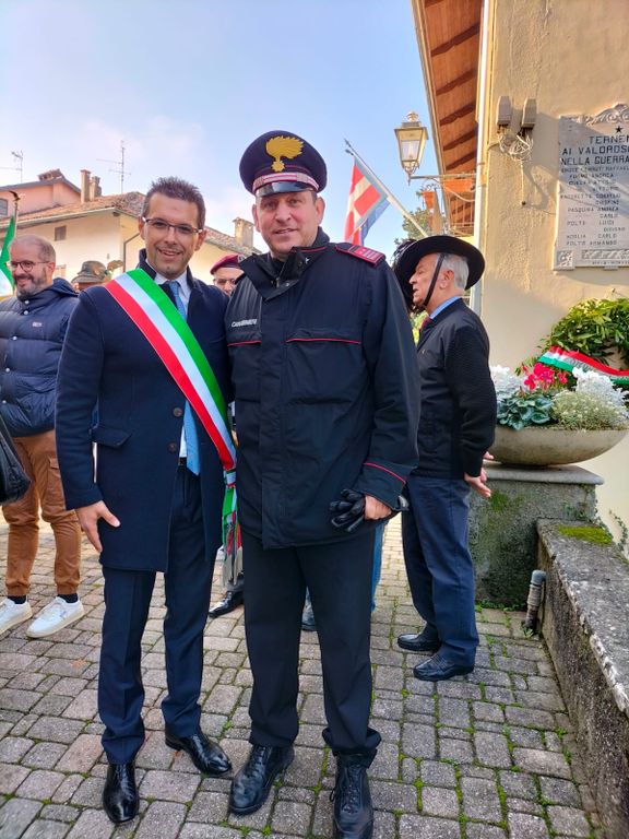 Ho l’onore quest’anno di avere qui vicino a me il nostro Comandante della Stazione Carabinieri di Bioglio, il Luogotenente Remy Di Ronco. Dico che per me è un vero onore, in quanto, caro comandante, ti aspettavo già in occasione della nostra Festa Patronale di luglio, ma ancora stavi completando il rientro operativo dalla missione che ti ha visto protagonista in Kosovo. Lo scorso anno ho raccontato alla cittadinanza, in occasione di questa cerimonia, del nostro scambio di messaggi e dell’augurio nella giornata delle Forze Armate che il nostro paese ti inviava. Tu, mi hai chiesto con profonda raccomandazione, di portare a tutti i tuoi sinceri saluti. Ho mantenuto la promessa e la riconoscenza e gratitudine penso che tutte le buone persone non fatichino a dimostrartelo.