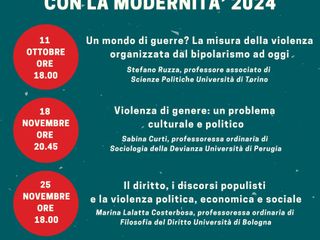 Il secondo appuntamento con i “Dialoghi della modernità”, lunedì 18 novembre, alle 20.45, organizzato dalla Cgil e dal Centro di documentazione “Adriano Massazza Gal” sarà incentrato sul tema della violenza di genere. Relatrice, Sabina Curti, professoressa ordinaria di sociologia della devianza all’Università di Perugia. L’appuntamento è nel salone “Di Vittorio” in via Lamarmora 4.