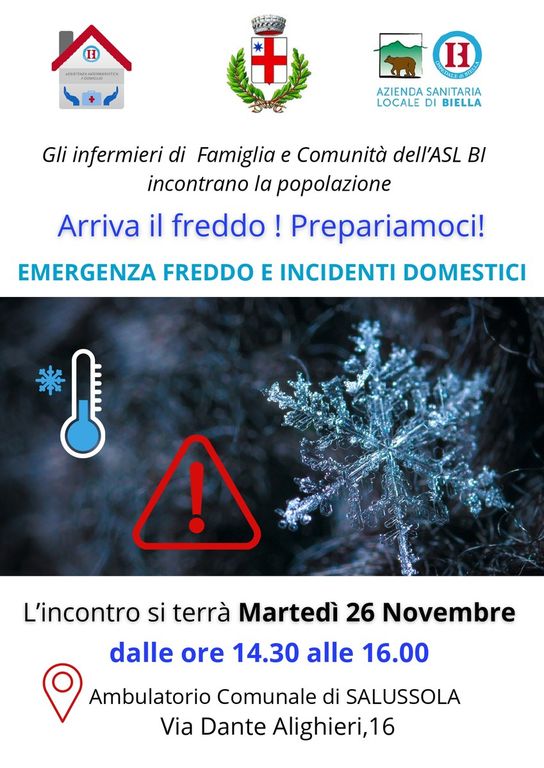 Tema saranno l'emergenza freddo e gli incidenti domestici. Si tratta di un progetto di ASL Bi che si occupa di medicina produttiva di incontro e scambio di esperienze con le persone.