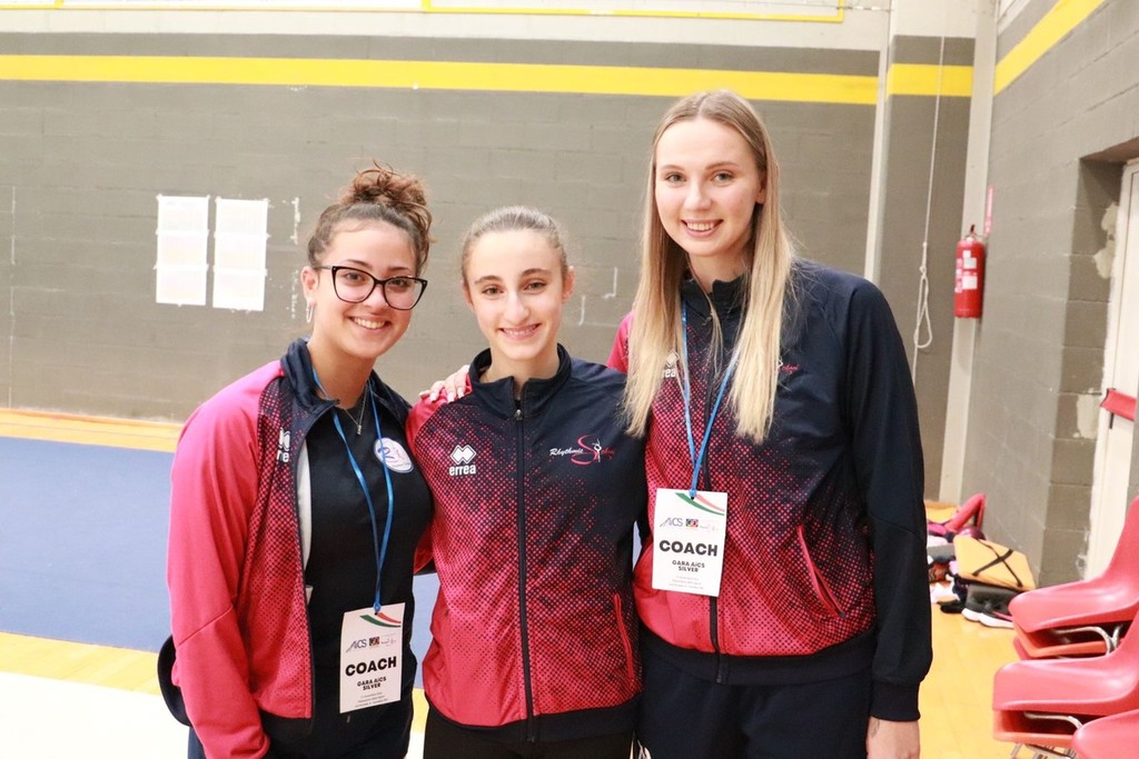 In LB1 si classifica al primo posto la squadra Open composta da Giorgia Bonifacio che ha eseguito il cerchio, Alice Cola impegnata alla palla ed al nastro e Ginevra Lanza alle clavette. Medaglia d’oro anche per la squadra Allieve in LC composta da Ginevra Romanini che ha eseguito corpo libero e cerchio, Ginevra Segatto impegnata a fune e nastro e Ginevra Viana che si è destreggiata con la palla. E’ d’argento invece la squadra Open in LD che ha visto Martina Brocchi eseguire corpo libero e clavette, Giulia Bocci effettuare palla e cerchio ed Iris Marchesi concludere con il nastro. A seguire le atlete in pedana la DT Tatiana Shpilevaya, le istruttrici Mariia Nikitchuk, Elena Chursina e Giada Mello Grand, mentre era impegnata con il corpo giudicante Arianna Prete.