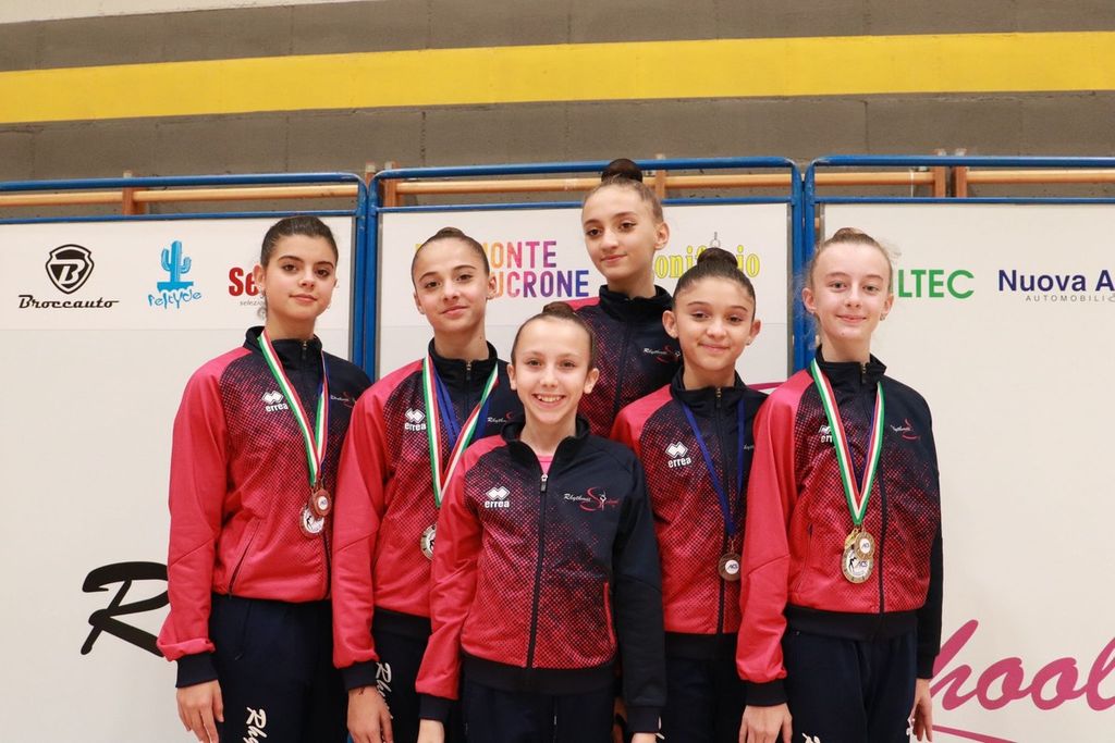 Nella categoria LD allieve2 due RSgirls in gara: Martina Brocchi che conquista due ori a cerchio e clavette e Rebecca Gallo che ottiene il bronzo al cerchio. Sempre in LD, ma fra le junior1 Iris Marchesi è d’oro a cerchio e nastro, mentre Giulia Bocci in pedana con le junior2 è d’argento al cerchio e di bronzo alla palla. Ottimi anche i risultati delle rappresentative.
