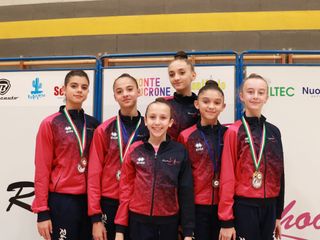 In LB1 si classifica al primo posto la squadra Open composta da Giorgia Bonifacio che ha eseguito il cerchio, Alice Cola impegnata alla palla ed al nastro e Ginevra Lanza alle clavette. Medaglia d’oro anche per la squadra Allieve in LC composta da Ginevra Romanini che ha eseguito corpo libero e cerchio, Ginevra Segatto impegnata a fune e nastro e Ginevra Viana che si è destreggiata con la palla. E’ d’argento invece la squadra Open in LD che ha visto Martina Brocchi eseguire corpo libero e clavette, Giulia Bocci effettuare palla e cerchio ed Iris Marchesi concludere con il nastro. A seguire le atlete in pedana la DT Tatiana Shpilevaya, le istruttrici Mariia Nikitchuk, Elena Chursina e Giada Mello Grand, mentre era impegnata con il corpo giudicante Arianna Prete.