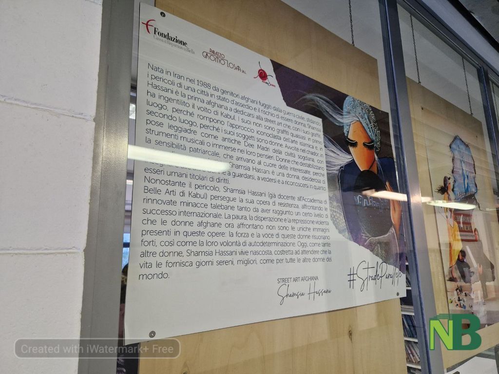 All'IIS Gae Aulenti di Biella, nella sede di Città Studi, nella mattina di oggi lunedì 25 novembre, in occasione della Giornata Internazionale contro la violenza sulle donne, è stata allestita la mostra #StradeParallele. Shamsia Hassani - Street Art Afghana, realizzata dall'Associazione Mafalda VocidiDONNE odv, da sempre vicina alle problematiche delle donne e, in questa fase storica tanto difficile, al popolo afghano.