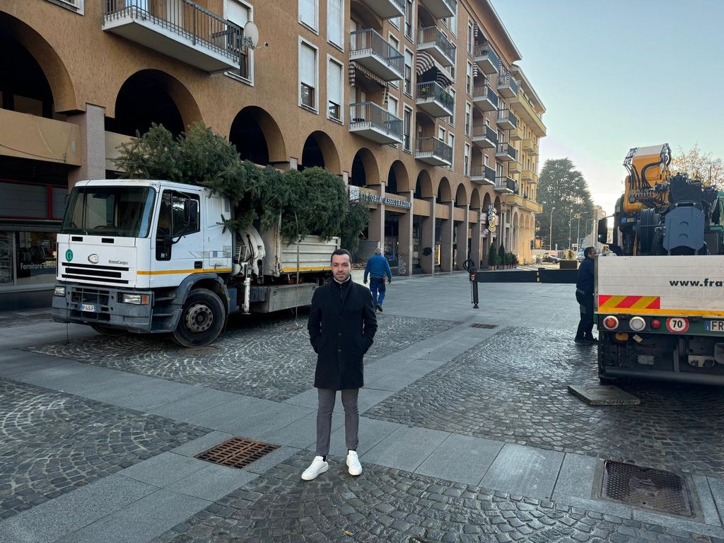 Ci siamo quasi: a piccoli passi Biella si addobba per le feste. E nella mattina di oggi mercoledì 27 novembre, è arrivato in piazza Vittorio Veneto l'albero alto 10 metri che verrà illuminato il 7 dicembre.