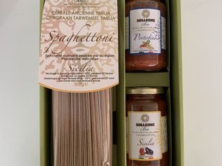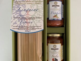 - Box sughi: 2 sughi BIO a scelta e 1 pacco di pasta BIO a scelta tra spaghetti Khorasan, linguine Senatore Cappelli e spaghettoni Timilia.