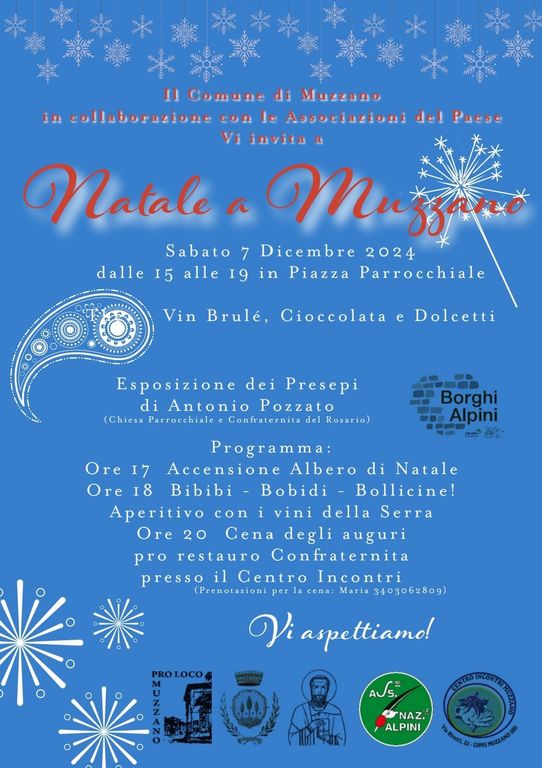 Natale ricco di eventi a Muzzano. Si comincia Sabato 7 dicembre con la conclusione dei laboratori dedicati alle bambine e ai bambini organizzati da Maria Grazia Curatolo. Durante i 3 laboratori i partecipanti hanno realizzato gli addobbi che adorneranno l'albero di Natale preparato in piazza parrocchiale dalla Pro Loco.