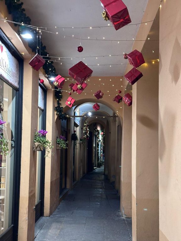 A Natale il negozio ed il suo esterno risplendono di mille luci e decorazioni e l’atmosfera gioiosa riporta i passanti ai giorni di festa ed ai mercatini natalizi.
