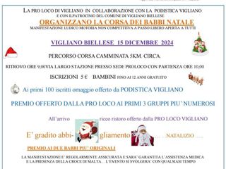 Vigliano Biellese si prepara per la “Corsa dei Babbi Natali” manifestazione non competitiva aperta a tutti che si terrà il 15 dicembre. Il percorso di corsa camminata è di circa 5 km e prevede la premiazione dei primi tre gruppi più numerosi. Il ristoro verrà gentilmente offerto dalla Pro Loco di Vigliano.