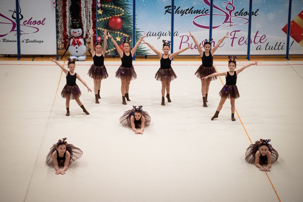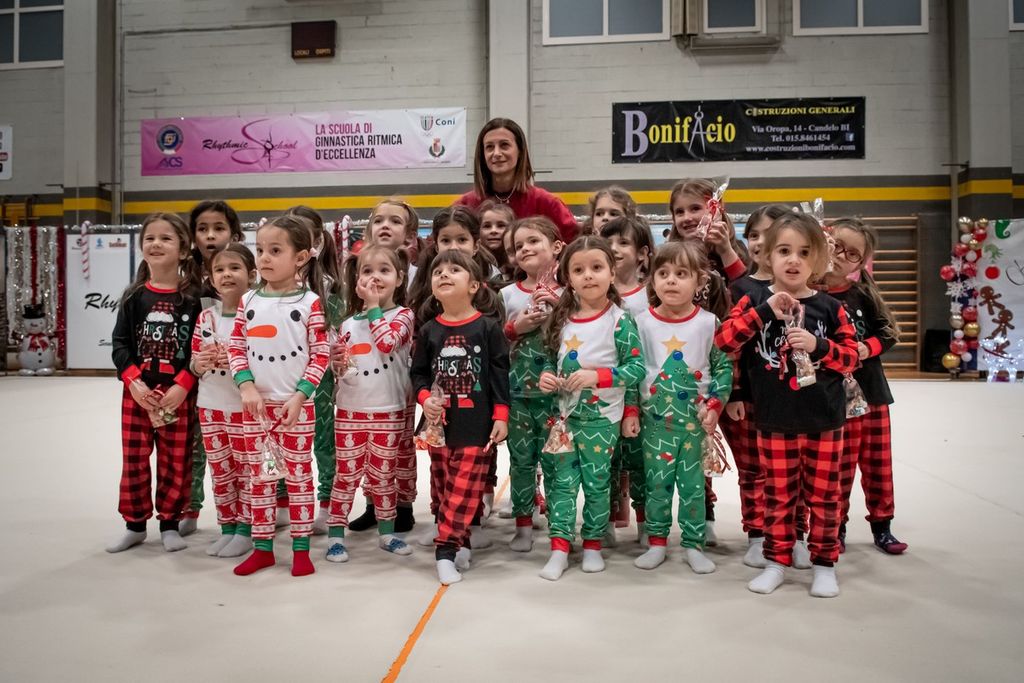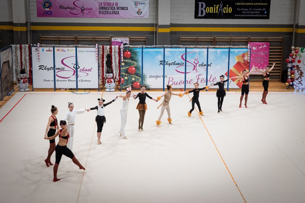 Come ormai da tradizione, nel pomeriggio di sabato, presso il palazzetto dello sport di Candelo, la Rhythmic School ha organizzato il Saggio/Festa di Natale. Incontro/evento che ha visto scendere in pedana tutte le iscritte alla scuola di Ginnastica Ritmica di Tatiana Shpilevaya a partire dalle piccolissime baby, ai corsi base delle varie annate, per giungere ai corsi avanzati, alla pre agonistica ed alle magnifiche ginnaste della squadra agonistica, alcune di loro, neo campionesse d’Italia alla recente Ginnastica in Festa-Winter Edition di Rimini.