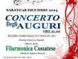 A Cossato è tutto pronto per il Concerto degli Auguri. Si tratta del tradizionale appuntamento di fine anno con la Filarmonica Cossatese, che vedrà anche la partecipazione degli studenti frequentanti l'indirizzo musicale dell'Istituto Comprensivo di Cossato.