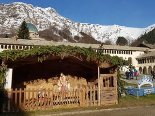 Al centro del chiostro del Santuario, come da tradizione è stata allestita la capanna del presepe con statue a grandezza naturale, donate della Confraternita di Oropa. Osservando attentamente, accanto alla Sacra Famiglia, fanno capolino una pecora con il suo agnellino, che animano la scena.