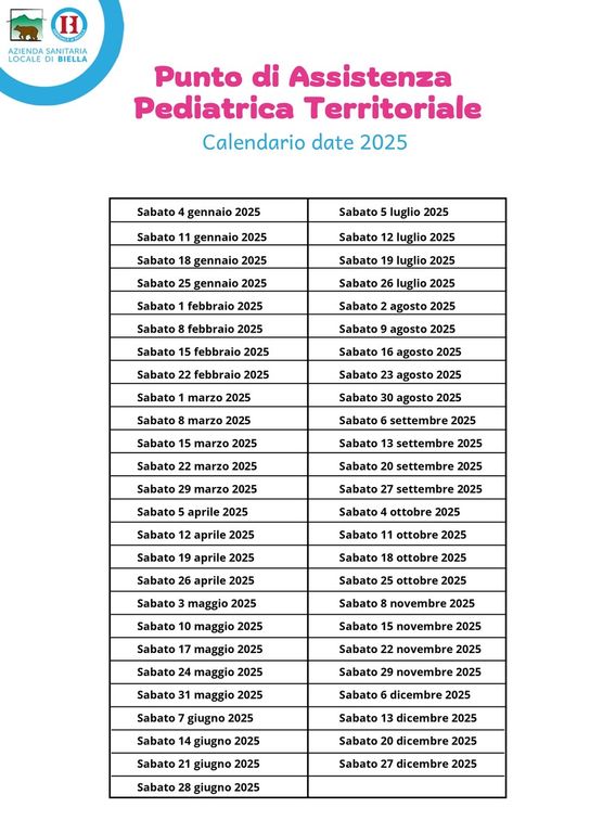 Il Punto di Assistenza Pediatrica territoriale (PAPT) è un Ambulatorio ad accesso libero svolto dai Pediatri di Famiglia con il supporto infermieristico dell’ASL BI per la patologia acuta (escluse emergenze/urgenze). È stato rinnovato per tutto il 2025 e sarà attivo presso la sede per i Servizi Socio Sanitari di Vigliano Biellese.