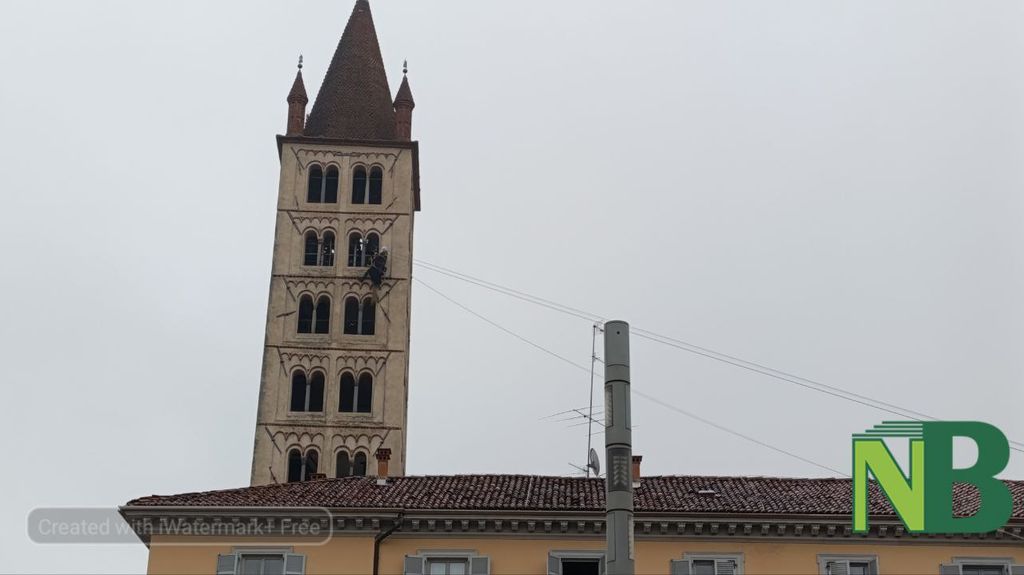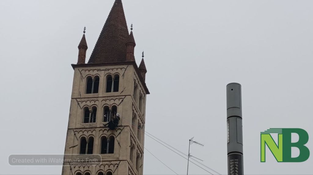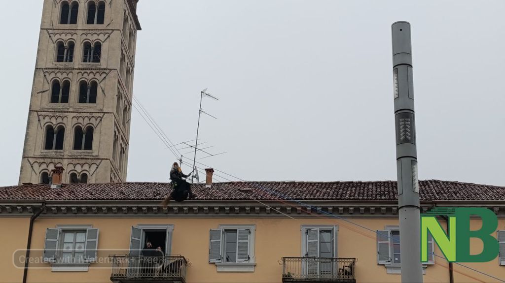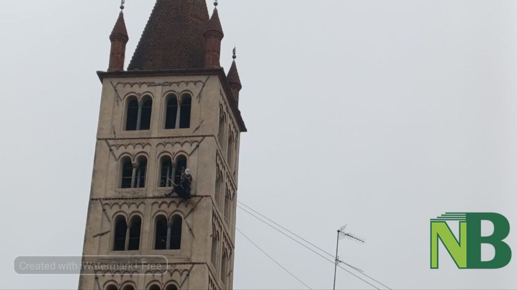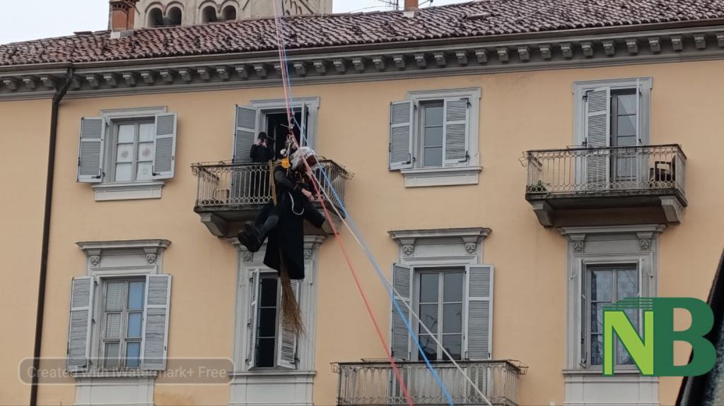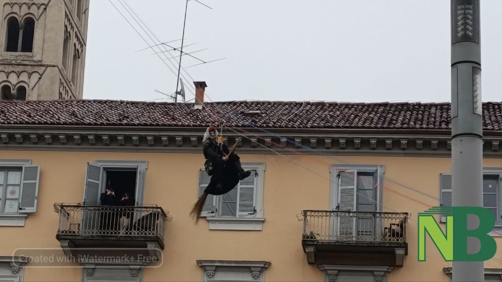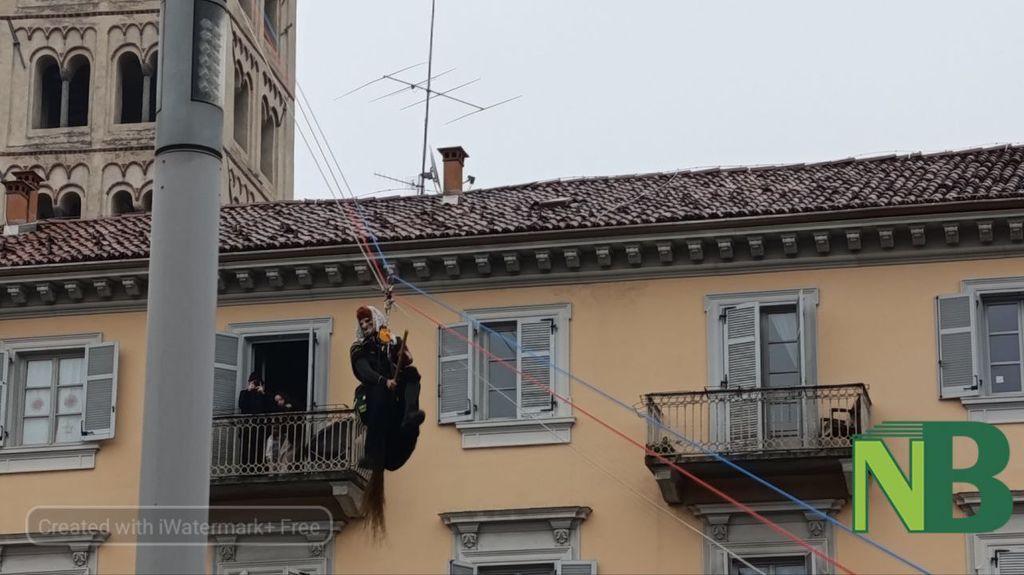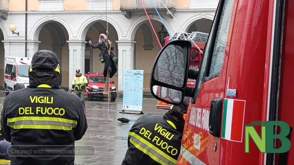 Il freddo e la pioggerella non hanno fatto cambiare i piani alla Befana dei Vigili del Fuoco, che nella mattina di oggi lunedì 6 gennaio per distribuire caramelle ai bambini ha fatto la sua discesa dal campanile del Duomo.