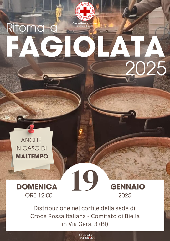 Domenica 19 gennaio 2025 torna l'attesissima Fagiolata benefica organizzata dalla Croce Rossa di Biella. Un evento che ormai è diventato una tradizione consolidata, con una ricetta collaudata che conquista ogni anno i palati di tanti biellesi.