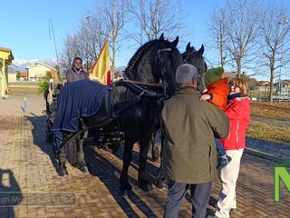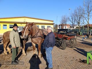 "Fortunatamente oggi è una bellissima giornata - spiegano Costanzo Claudio e Cantalavo Simone, tra gli organizzatori dell'evento -. Con tutti gli altri amici collaboratori dai Comuni di Benna, Massazza, Villanova e Verrone, siamo gli organizzatori di questa festa del ringraziamento dei Carrettieri e Agricoltori dei nostri Comuni. Ci sono tanti mezzi, cavalli, tante carrozze. Partecipano a questa festa anche i carrettieri di Candelo, i carrettieri di Vigliano Biellese, con altri appassionati privati".