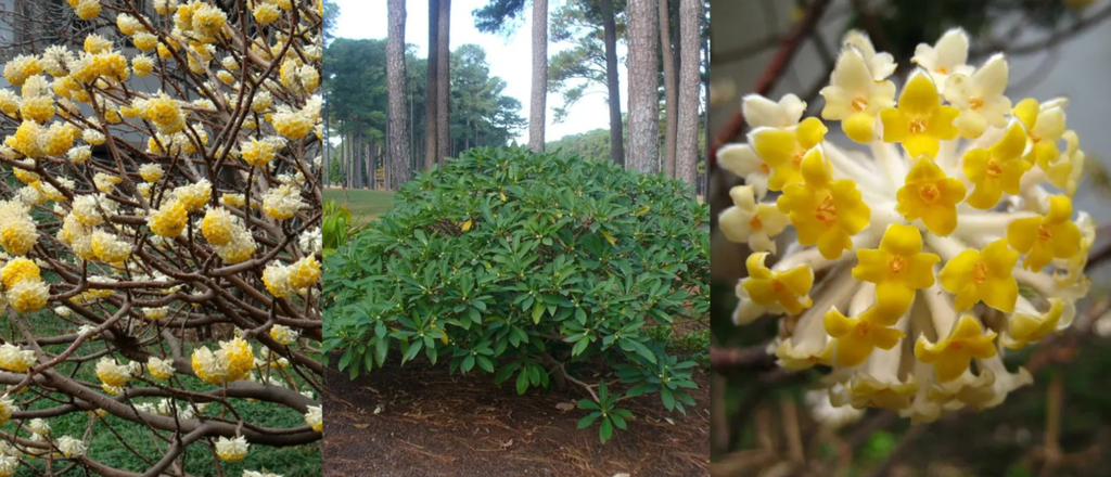 Originaria delle montagne cinesi e giapponesi, questa pianta grazie alla particolare fibrosità del suo legno veniva utilizzata in modo particolare per produrre la pregiata carta di mitsumata, famosa per la sua texture delicata e la sua durabilità.