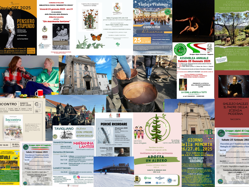 - Sala Biellese, via Ottavio Rivetti 5, dal 25/1 al 23/02 "Porrajmos. Altre tracce sul sentiero per Auschwitz". L'inaugurazione sarà sabato 25 gennaio 2025, alle ore 15:00, Realizzata dall’Istituto di Cultura Sinta di Mantova e dall’Associazione Nevo Drom di Bolzano. Da lunedì a venerdì, su appuntamento sabato & domenica, dalle 14:30 alle 17:30.