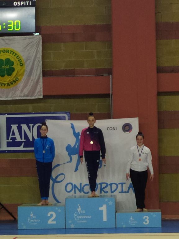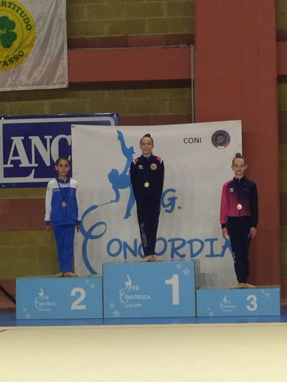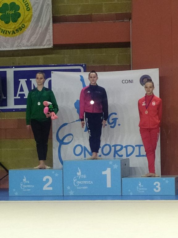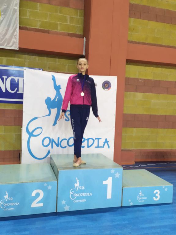 Hanno ottenuto il terzo posto e la medaglia di bronzo, Ginevra Segatto, fra le Allieve 5, in gara con fune e nastro e Ginevra Romanini, nelle Allieve 3, scesa in pedana con cerchio e fune. Ai piedi del podio, al quarto posto si è classificata Ilaria Giabardo, fra le S1, presentando esercizi alle clavette ed al nastro. Hanno gareggiato nel campionato LC2, nella categoria Allieve 5, Ginevra Viana in gara con palla e nastro occupando il nono posto e Rebecca Gallo con cerchio e palla che si è classificata undicesima.