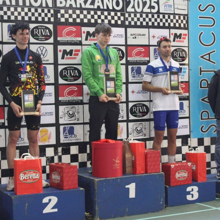 Sempre domenica 23 febbraio si è disputato l’ormai classico Duathlon Sprint di Barzanò (LC) valido per il Circuito Duathlon con la collaudata organizzazione di Spartacus Events. Al maschile gara estremamente positiva con il 1° posto assoluto, per il giovane lecchese Andrea Balestreri, protagonista di una gara di testa e con tre frazioni al top. Buona prova per Andrea Manzotti, in ottimo stato di forma, 24° assoluto e oro tra gli M1, argento tra gli M5 per un solidissimo Paolo Bonacina, buon 8° posto tra gli S1, per il torinese Enea Demarchi, seguito con delle performances positive dai torinesi Filippo Gai e Lorenzo Gatti.