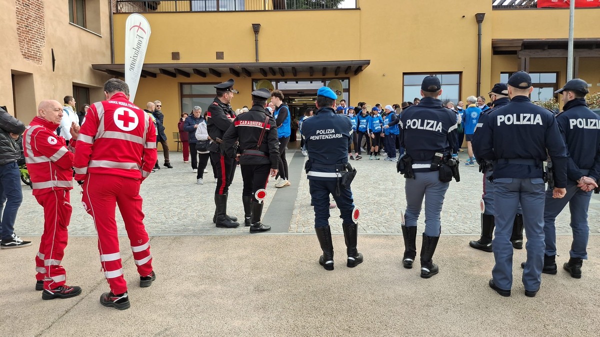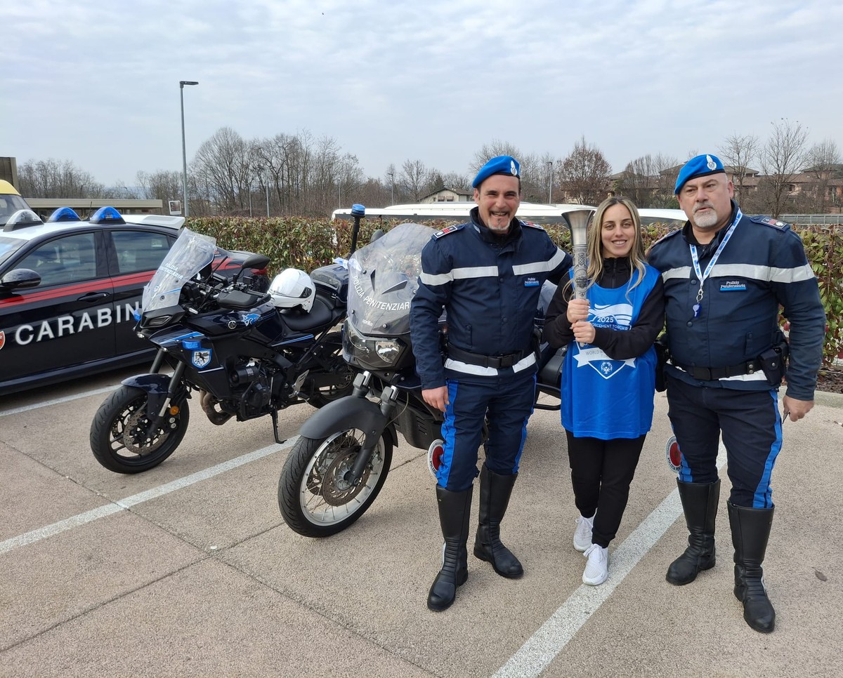 Presenti anche il Dirigente della Polizia Penitenziaria di Biella Dott. Paolo Cugliari, con il Dirigente della Polizia Penitenziaria di Vercelli Dott. Mirko Trinchero, insieme all'Atleta Giuliana Cinnirella della PP e i due motociclisti del Servizio Viabilità, che hanno scortato gli atleti per le vie di Biella.