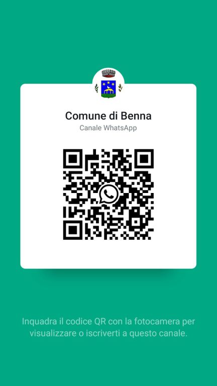 Per iscriversi al canale basta collegarsi al seguente link https://whatsapp.com/<wbr></wbr>channel/<wbr></wbr>0029Vb8p3LD90x2pXUrh413D <wbr></wbr>oppure collegarsi a WhatsApp, andare nella sezione “aggiornamenti” ed inquadrare il codice QR rintracciabile sul sito del Comune www.comune.benna.bi.it <wbr></wbr>e cliccare su “iscriviti”.
