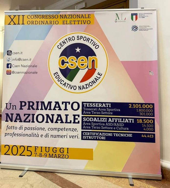 Tre giorni intensi di confronto, elezioni e dibattiti hanno caratterizzato il XII Congresso Nazionale CSEN, svoltosi presso l’Ambasciatori Place Hotel di Fiuggi (FR). L’evento, svoltosi fra venerdì 7 e domenica 9 marzo 2025, ha visto la partecipazione dei principali rappresentanti del Centro Sportivo Educativo Nazionale, tra cui il Comitato Provinciale CSEN di Biella, in un appuntamento chiave per il futuro dell’ente e del movimento sportivo italiano.