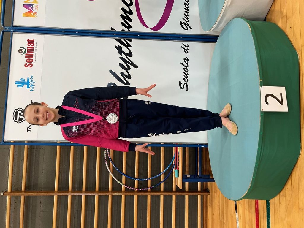 Ottima la prova di Ginevra Lanza che ha conquistato il secondo posto e la medaglia d’argento nella categoria allieve 5 (anno 2012) con due eccellenti esibizioni a cerchio e clavette. Ha gareggiato nella categoria Junior 1 (anno 2011) Adamo Alyssa che portando in gara cerchio e palla ha ottenuto l’undicesimo posto; mentre è scesa in campo , fra le Allieve 2 (anno 2015) Adamo Andrea Viola che con buone esibizioni a corpo libero e palla ha ottenuto il quattordicesimo posto sulla quarantina di atlete in gara in questa categoria.