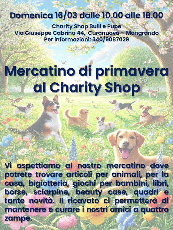 L'appuntamento è per domenica 16 marzo dalle 10 alle 18 nel charity shop a Mongrando. Tutto l'incasso della giornata servirà per i loro bimbi pelosi in attesa di adozione.