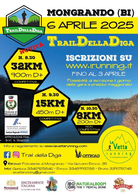 Tutto pronto a Mongrando per l'edizione 2025 del Trail della Diga, in programma domenica 6 aprile al Polivalente del paese. Tra le novità di quest'anno vi è senza dubbio la gara competitiva da 32 chilometri (con partenza alle 8.30), che si affiancherà a quelle da 15 (ore 9.30) e 8 km (ore 10.30).
