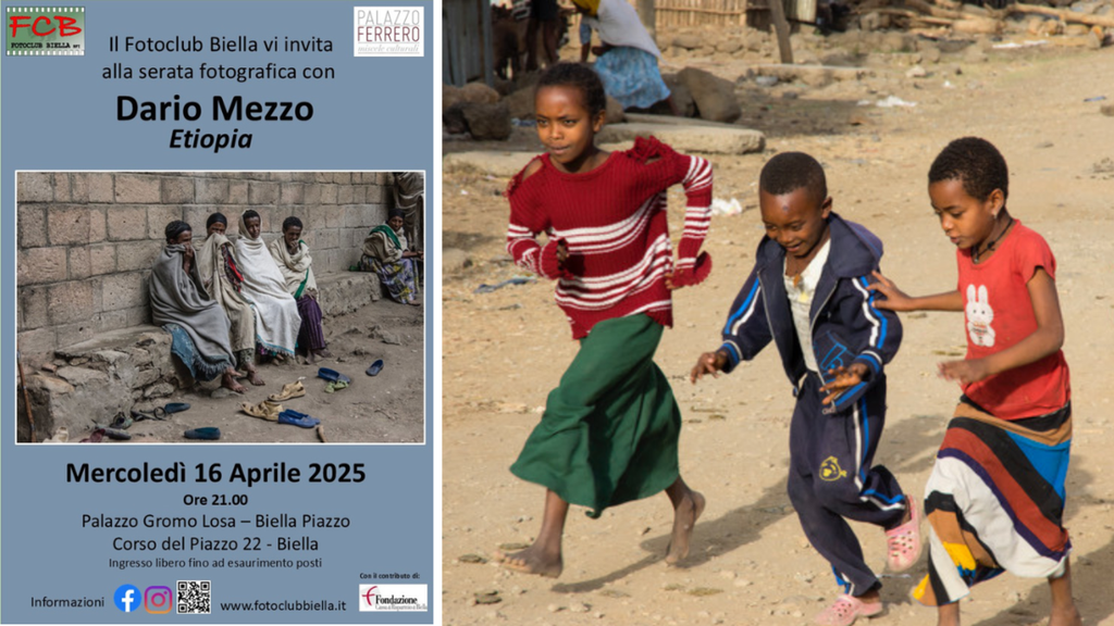 Originario di Occhieppo Superiore e socio del Circolo Fotografico “I Riflessi”, Dario Mezzo ha trasformato la passione per la fotografia in uno strumento di racconto e condivisione. In questa occasione porterà il pubblico alla scoperta dell’Etiopia, attraverso un reportage visivo ricco di suggestioni culturali e spirituali.