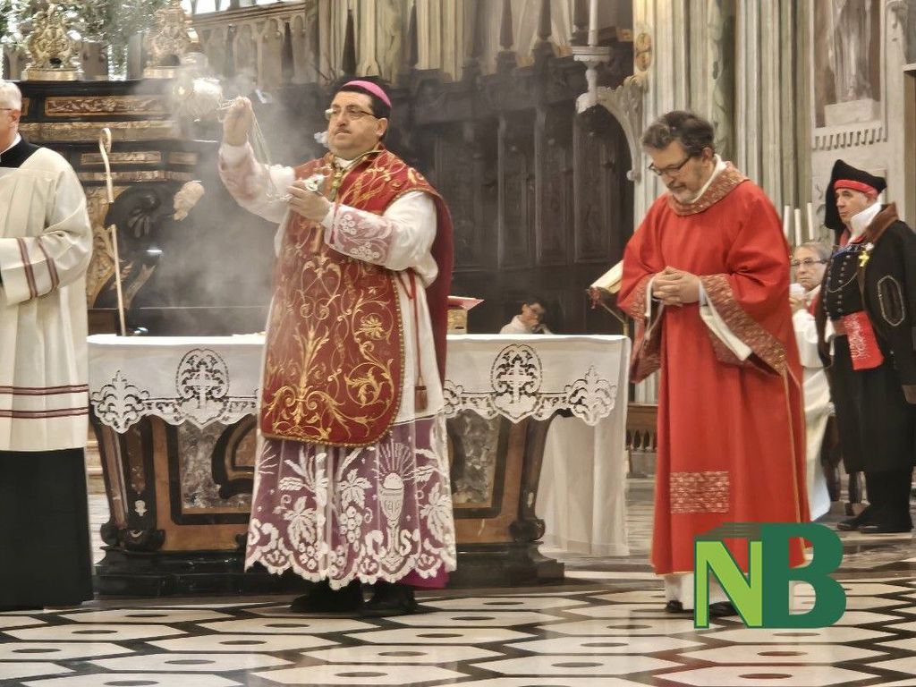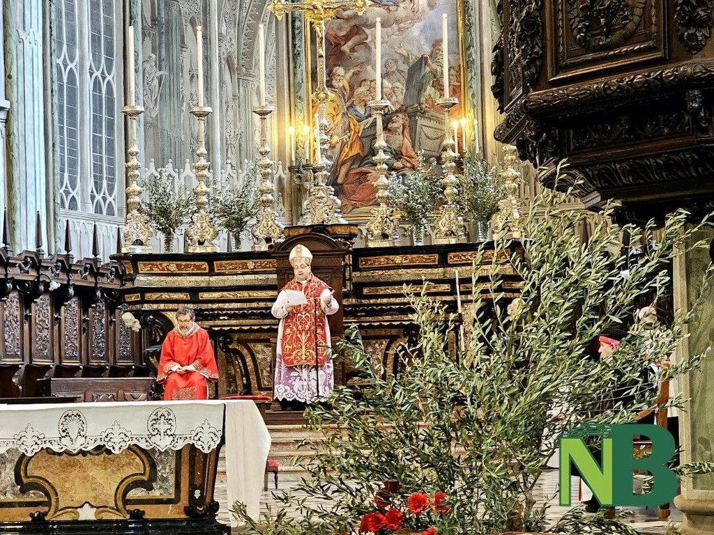 Comunità di Biella in festa per la Domenica delle Palme. Nella mattinata di oggi, 13 aprile, si è tenuta la Santa Messa in Duomo presieduta dal vescovo Roberto Farinella. Ad accompagnare la celebrazione il coro della parrocchia di Santo Stefano, diretto dal vicario generale della Diocesi, il canonico don Paolo Boffa Sandalina. Per l'occasione, il vescovo di Biella ha portato in processione la palma filadas, realizzata finemente a mano dagli artigiani del circolo sardo Su Nuraghe di Biella.