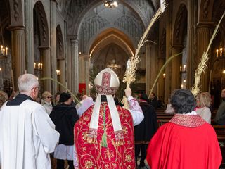 Comunità di Biella in festa per la Domenica delle Palme. Nella mattinata di oggi, 13 aprile, si è tenuta la Santa Messa in Duomo presieduta dal vescovo Roberto Farinella. Ad accompagnare la celebrazione il coro della parrocchia di Santo Stefano, diretto dal vicario generale della Diocesi, il canonico don Paolo Boffa Sandalina. Per l'occasione, il vescovo di Biella ha portato in processione la palma filadas, realizzata finemente a mano dagli artigiani del circolo sardo Su Nuraghe di Biella.
