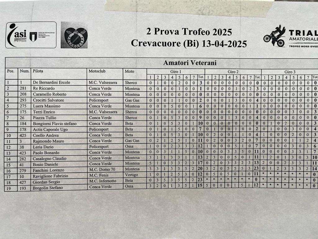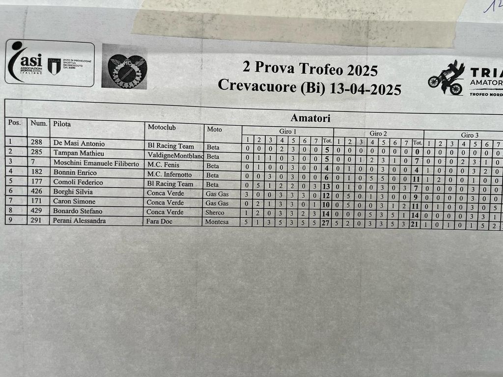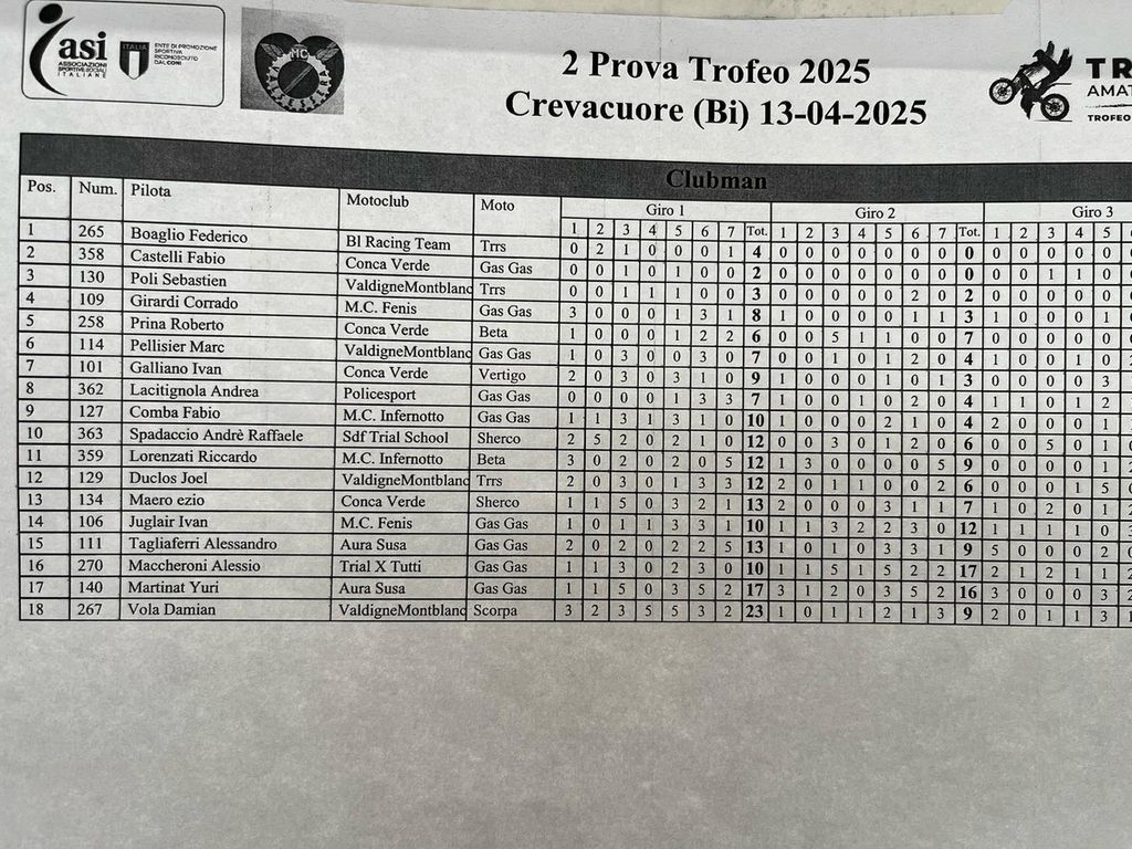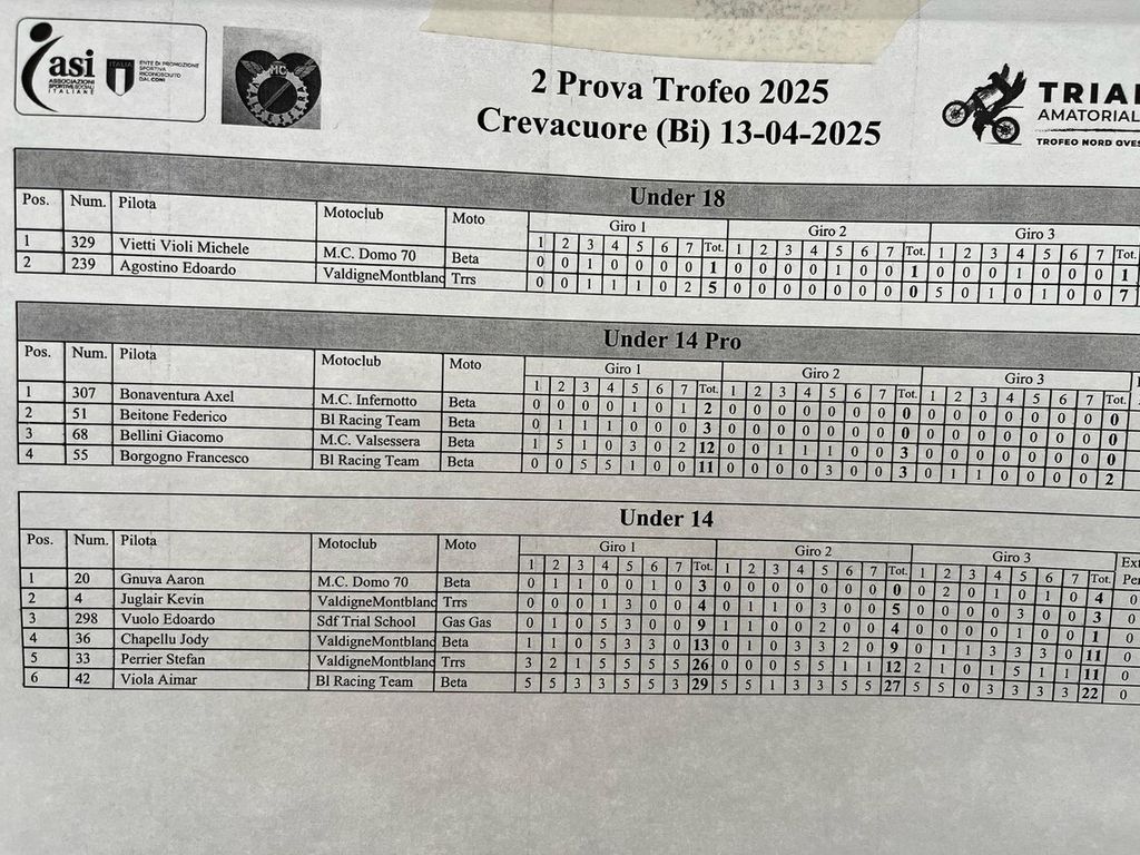 Una giornata all’insegna dello sport e dell’adrenalina per tutti gli appassionati delle due ruote. Presenti ben 96 centauri (alcuni giunti anche da Torino), divisi per categoria, pronti a sfidarsi sul tracciato di gara, che prevedeva 7 zone da affrontare per 3 giri, con 4 livelli di difficoltà pensati ai vari gradi di esperienza e preparazione. In allegato le classifiche finali e complete.