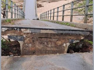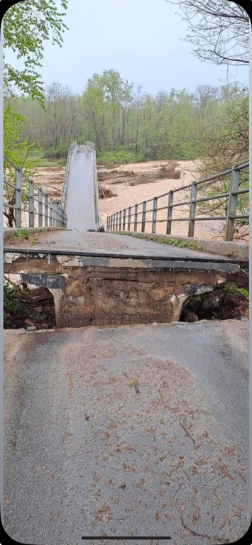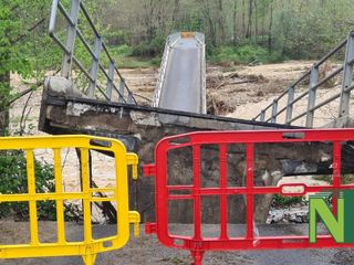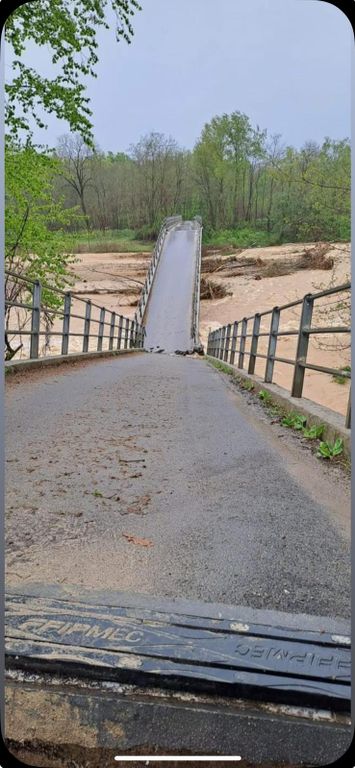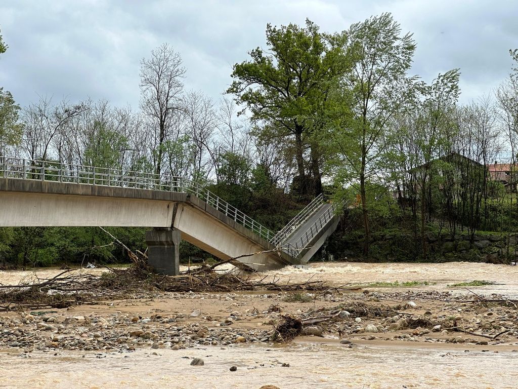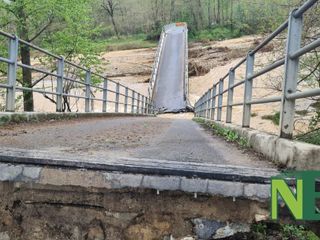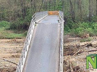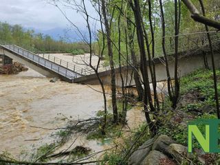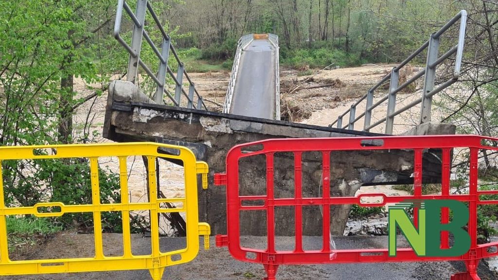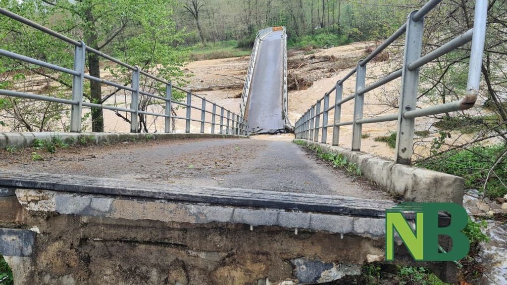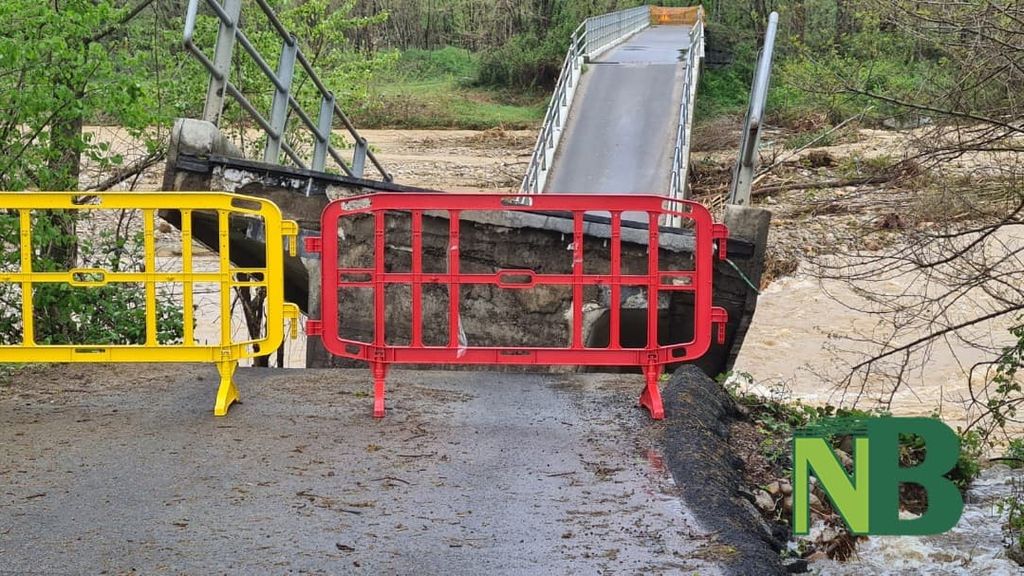 La piena dell'acqua ha completamente abbattuto una porzione del ponte, ora chiuso al traffico e alla viabilità pedonale. Sul posto anche i Carabinieri e il personale comunale dei paesi.