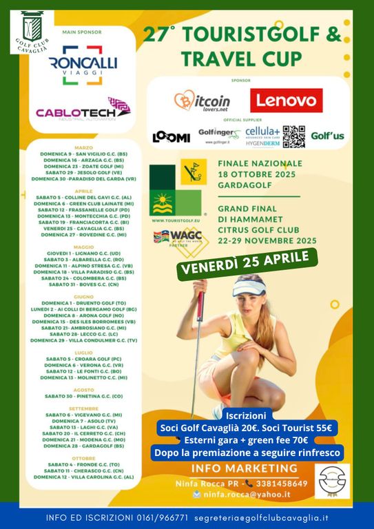 Sul sito di golf potete trovare il calendario completo della stagione 2025 (sempre passibile di qualche variazione).