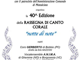 Si svolgerà a Mottalciata sabato 26 aprile, nella Chiesa di S. Vincenzo , la 40^ edizione della rassegna corale “Notte di note”, organizzata dal Coro Biellese La Campagnola con il patrocinio dell’amministrazione comunale.