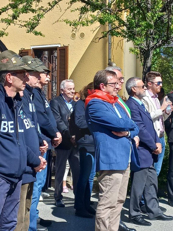 A seguire, si è svolta la deposizione della corona d’alloro al monumento ai Caduti, accompagnata da un minuto di raccoglimento e da brani eseguiti con grande sensibilità dalla Filarmonica di Cossato e dal Coro “Incanto tra le Note”, che hanno contribuito a rendere la cerimonia ancora più toccante.