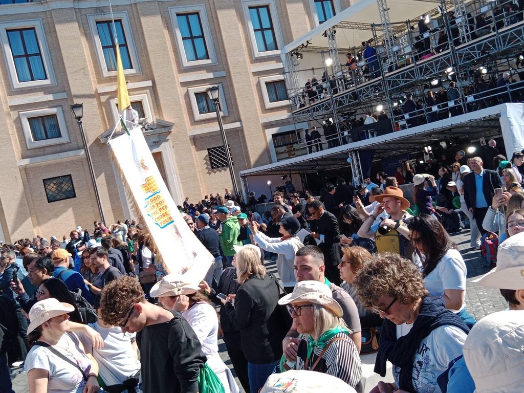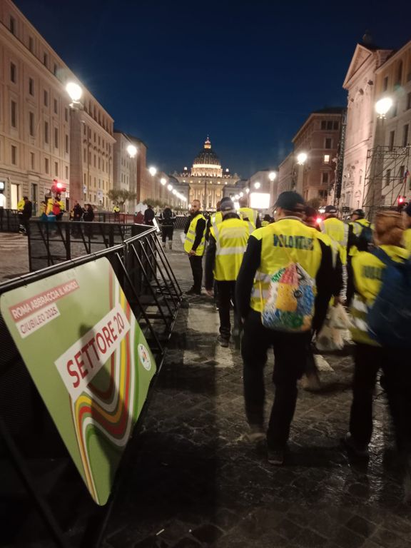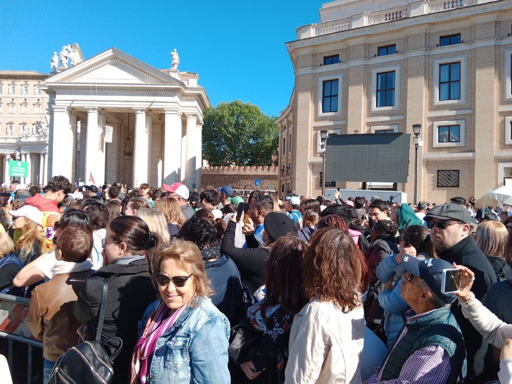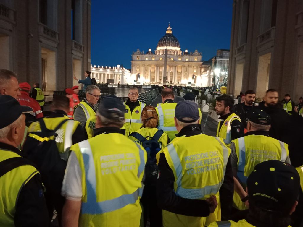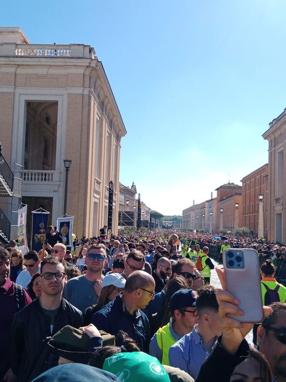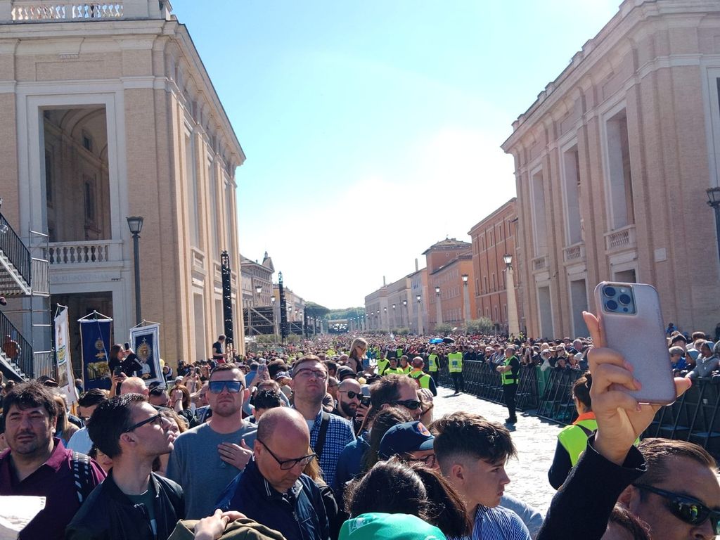 Intorno alle 10 di oggi, 26 aprile, ha avuto inizio la processione: in piazza si è raggiunta la capienza massimo di 50mila persone, oltre ai tanti rimasti in via della Conciliazione e nelle strade vicine alla Città del Vaticano. Il servizio d'ordine vede in campo molto personale: tra questi, molti volontari del Coordinamento Territoriale di Protezione Civile.