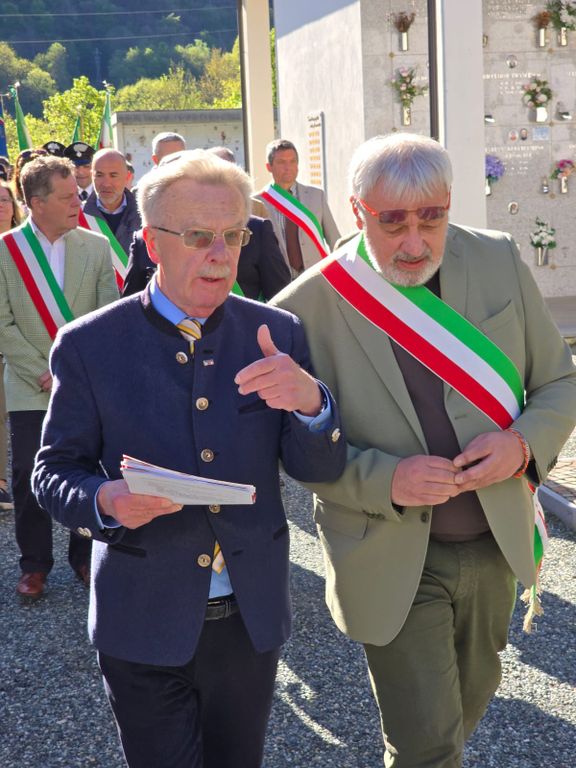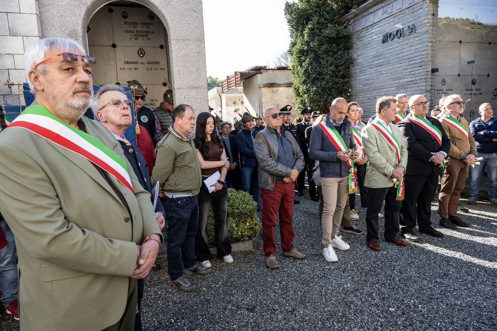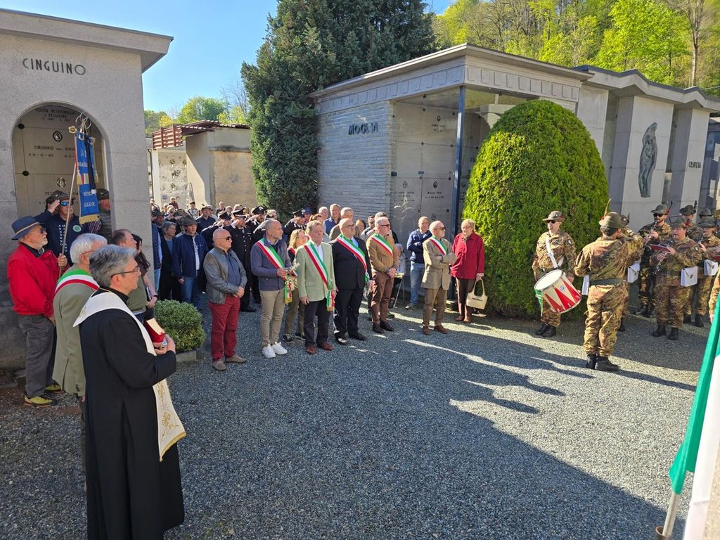 A margine dei discorsi ufficiali i Sindaci della Valle Cervo hanno consegnato ai rispettivi ex sindaci, quelli in carica dalla Liberazione fino a oggi e ancora viventi, una pergamena testimonianza del loro impegno democratico conferita da Regione Piemonte, Consiglio Regionale del Piemonte e Comitato Resistenza e Costituzione. Al termine delle orazioni e dell’omaggio ai Caduti al Cimitero comunale, i partecipanti, Fanfara in testa con Gonfaloni a autorità al seguito, è partito il corteo diretto alla Chiesa Parrocchiale di Tollegno per una messa in onore dei defunti per la Libertà, celebrata dal parroco Don Paolo Gremmo.