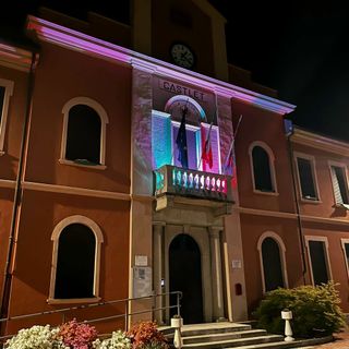 Anche Castelletto Cervo aspetta gli Alpini, la facciata del municipio illuminata con il tricolore FOTO