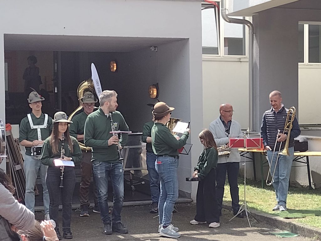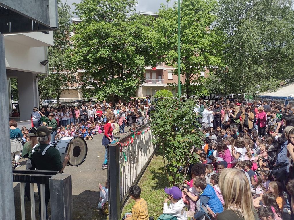 Questa mattina, oggi giovedì 8 maggio, la banda degli Alpini di Brescia, ospiti presso l'I.C. Biella 3 ha suonato nel cortile della sede Marconi, dove moltissimi alunni, di Infanzia, Primaria e Secondaria, si sono radunati per ascoltarla e contare tutti insieme l'"Inno nazionale", l'"Inno degli alpini trentatré", "Sul cappello" e "Aprite le porte".